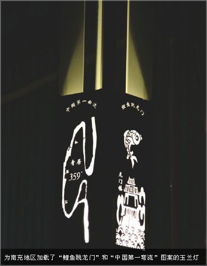 如果说宽窄巷子的照明设计让李代雄教授一举成名,那么北川新县城的道路照明设计则是他照明设计的升华。北川是大禹的故里,羌文化中心。李教授在设计上从古老的羌文化入手,结合现代生产工艺,将当地文化符号和图案融入到照明灯具的灯杆上,为北川量身定做了独一无二的“羌“灯,不仅受到当地群众的欢迎,也在整个行业内引起轰动。就在此时,李代雄教授的文化照明理念已悄悄生根发芽。