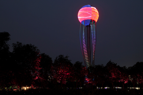 10世博轴上“焰火表演” 揭开灯光背后的秘密