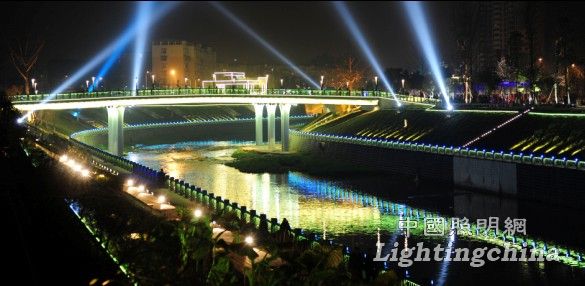 四川省资阳市九曲河综合整治工程投资约20亿元,对九曲河城区段十一公里的河道和沿河两岸道路、河堤、桥梁、管网以及九曲河广场景观照明等进行综合整治,促进资阳市人居环境的全面提升,陕西天和照明设备工程有限公司是此次工程照明设计及施工单位。
