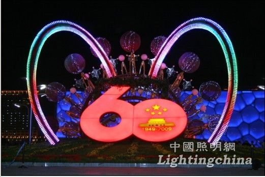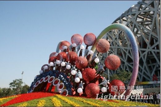 为迎接国庆60周年,奥尔公司特意制作本作品,在鸟巢国家体育场前展示给市民们欣赏。展现中华民族的优秀传统,打造夜晚的一个景观亮点。