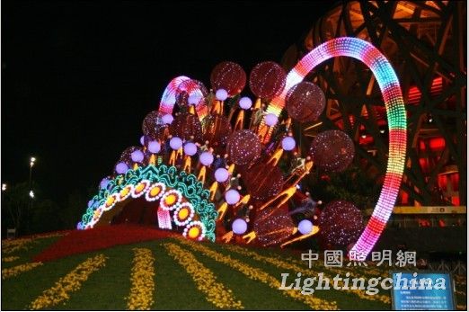 摘要: 为迎接国庆60周年,奥尔公司特意制作本作品,在鸟巢国家体育场前展示给市民们欣赏。展现中华民族的优秀传统,打造夜晚的一个景观亮点。