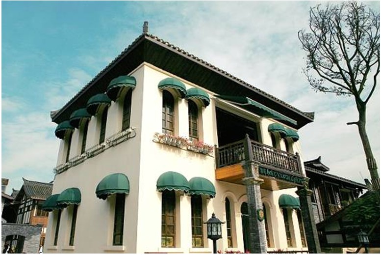 ![]() 6、有一幢西式洋楼在景区中心,它的存在反映了成都与西方社会的交流,要慎重表现,否则在风格上会产生冲。(配小洋楼图片)