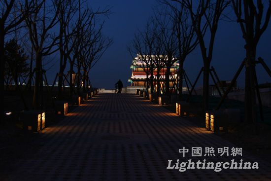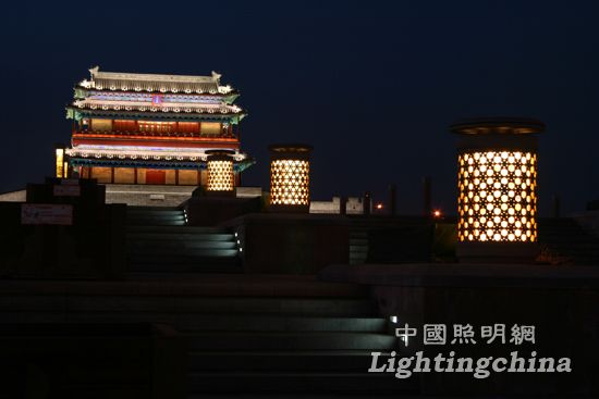 照明原则:从形式布局上与永定门的格局相互呼应;从文脉传承上与历史相互呼应,从氛围烘托上与广场整体环境相互呼应。